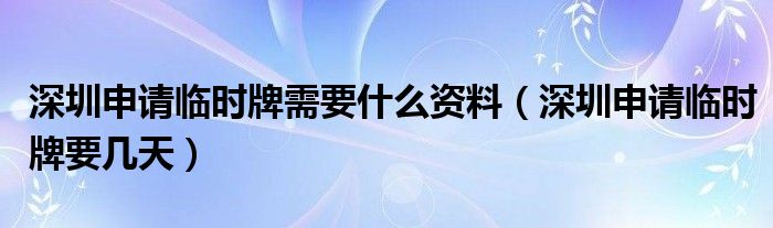 今日最新:大家好,小太来为大家解答以上的问题深圳申请临时牌需要什么资料,深圳申请临时牌要几天这个很多人还不知道,现在让我们一起来看看吧!