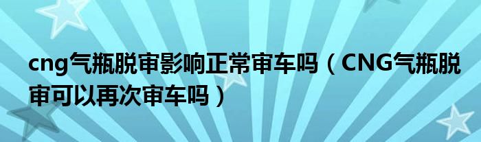 1、CNG气瓶脱审是可以重新审车的,但是重新审车的要求是车主必须把之前收到执法部门处罚消除后,才可以进行二次审核。车辆重新审车会根据车辆超出年审的时间对车辆进行不等的处罚。