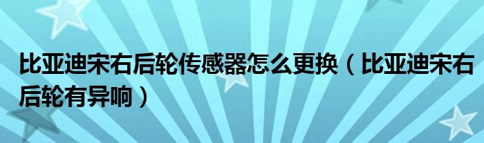 今日最新:大家好,小太来为大家解答以上的问题比亚迪宋右后轮传感器怎么更换,比亚迪宋右后轮有异响这个很多人还不知道,现在让我们一起来看看吧!